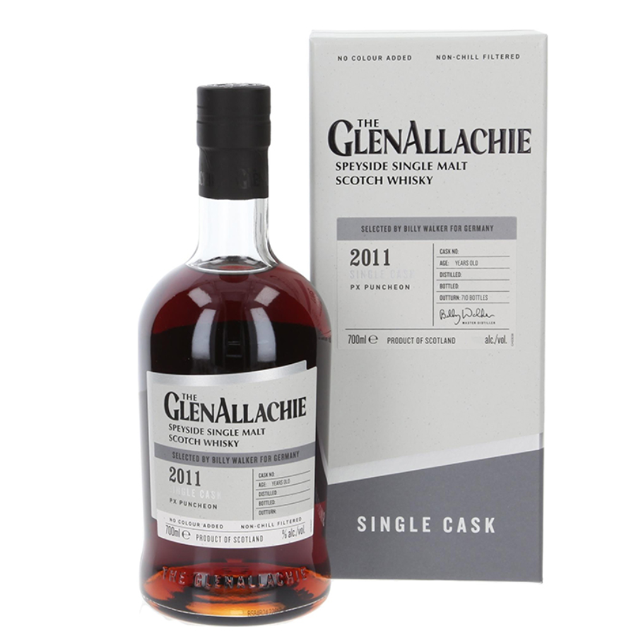 Glenallachie 2011 PX Puncheon Cask No.803432 là phiên bản single cask giới hạn được chưng cất năm 2011 và ủ trong thùng Pedro Ximénez Sherry Puncheon – loại thùng trứ danh mang lại chiều sâu hương vị ngọt ngào, phức hợp và đặc trưng của dòng sherry whisky cao cấp. Dưới sự giám sát của Billy Walker, bậc thầy pha chế nổi tiếng, chai whisky này thể hiện trọn vẹn tinh thần thủ công và cá tính riêng biệt của nhà Glenallachie vùng Speyside.