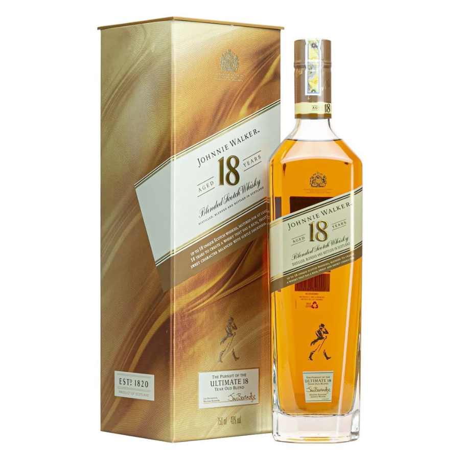 Johnnie Walker 18 Năm (Johnnie Walker Aged 18 Years) là dòng whisky cao cấp, được phối trộn từ những loại single malt và grain whisky tinh túy nhất, tất cả đều được ủ ít nhất 18 năm trong thùng gỗ sồi. Đây là chai rượu mang lại sự cân bằng tuyệt hảo giữa truyền thống Scotland và nghệ thuật phối trộn của nhà Johnnie Walker, được mệnh danh là “whisky dành cho những dịp đặc biệt”.