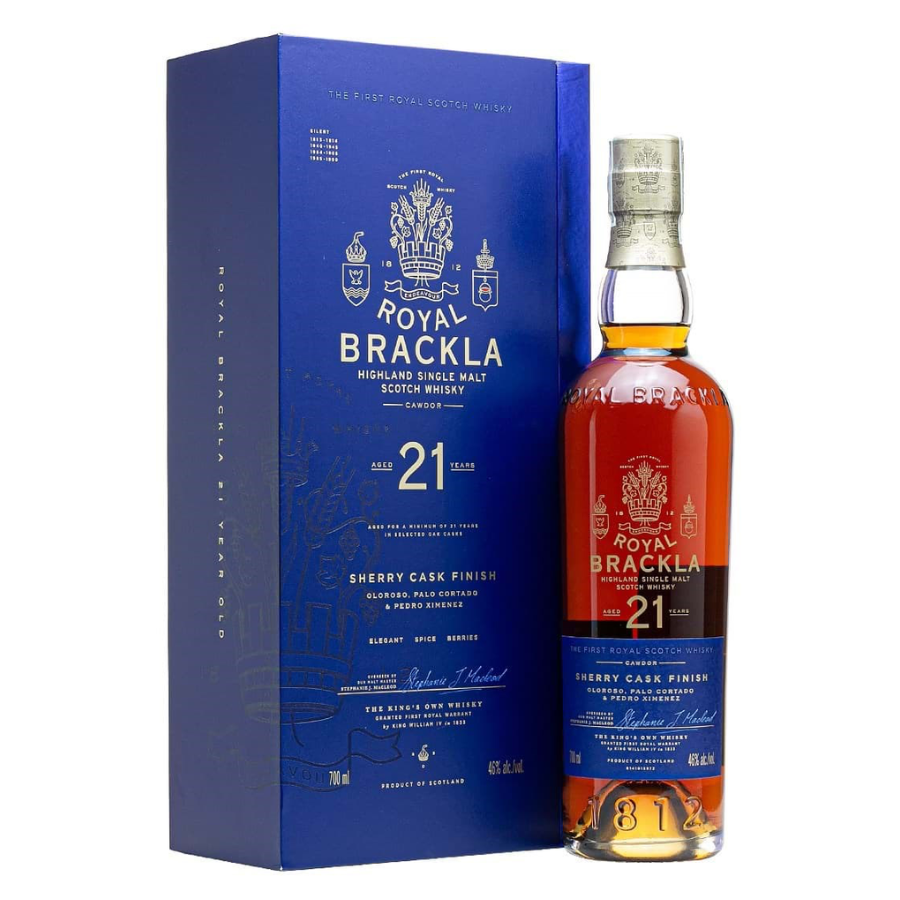Được ủ suốt 21 năm trong thùng gỗ sồi sherry oloroso và Palo Cortado, Royal Brackla 21 Năm mang trong mình hương vị đậm đà, sang trọng và độ sâu hiếm có. Đây là tuyệt tác dành cho người sành whisky, thể hiện đẳng cấp và phong cách quý tộc chuẩn hoàng gia.