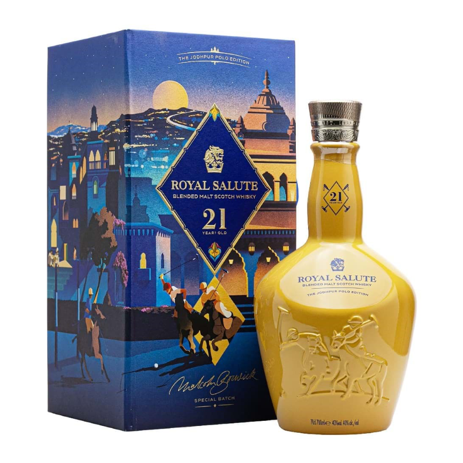 Royal Salute 21 Năm – Jodhpur Polo Edition là phiên bản giới hạn đặc biệt, tôn vinh tinh thần thể thao hoàng gia và di sản của môn polo tại thành phố Jodhpur – “thủ đô polo” của Ấn Độ. Đây là sự kết hợp độc đáo giữa nghệ thuật pha trộn whisky Scotland lâu đời và cảm hứng từ nét văn hóa xa hoa, quyền quý phương Đông.